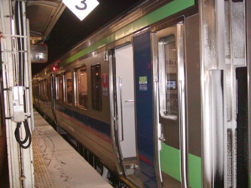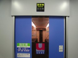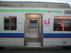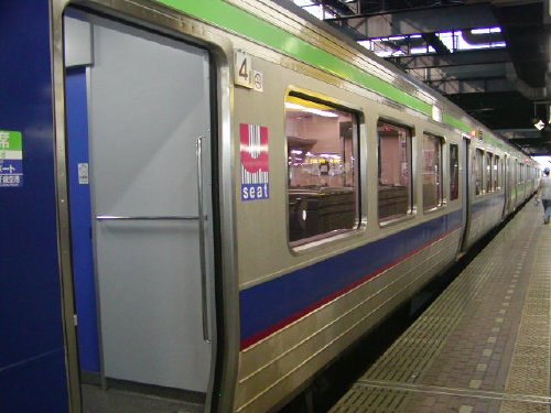 江別駅停車中のUシート車両。ここは自由席区間です。